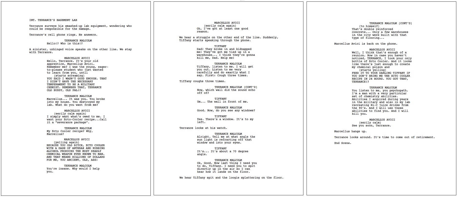And so Terrance must storm Marcellus’ secure and deadly compound by doing the thing he does best: creating bombs and chemical weapons on the fly out of random materials and liquids he finds lying around. With each guard that he takes out, each bomb that he launches, and each viral poison that he concocts, Terrance discovers the rage that he’s been bottling for 20 years since his wife died. And the poor souls on the receiving end of that rage will have no choice but to die for getting in Terrance’s way – until the inevitable final showdown between Terrance and Marcellus determines who will come out victorious. Because when it’s chemical genius vs. chemical genius, teacher vs. student, father vs. criminal… the last batch of Ecto Cooler goes to the last man standing…